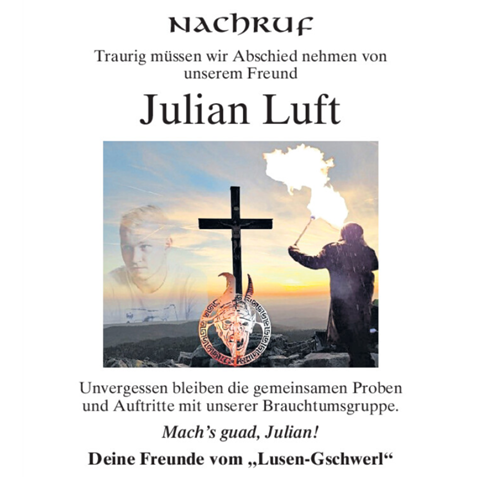 Für uns alle immer noch unbegreiflich, mussten wir von unserem Feuerspucker, Vorstandsmitglied und Freund Julian abschied nehmen. Durch seine hilfsbereite Art und seiner Kreativität wird er eine große Lücke in unserem Verein hinterlassen. WIR WERDEN DICH NIE VERGESSEN!!!